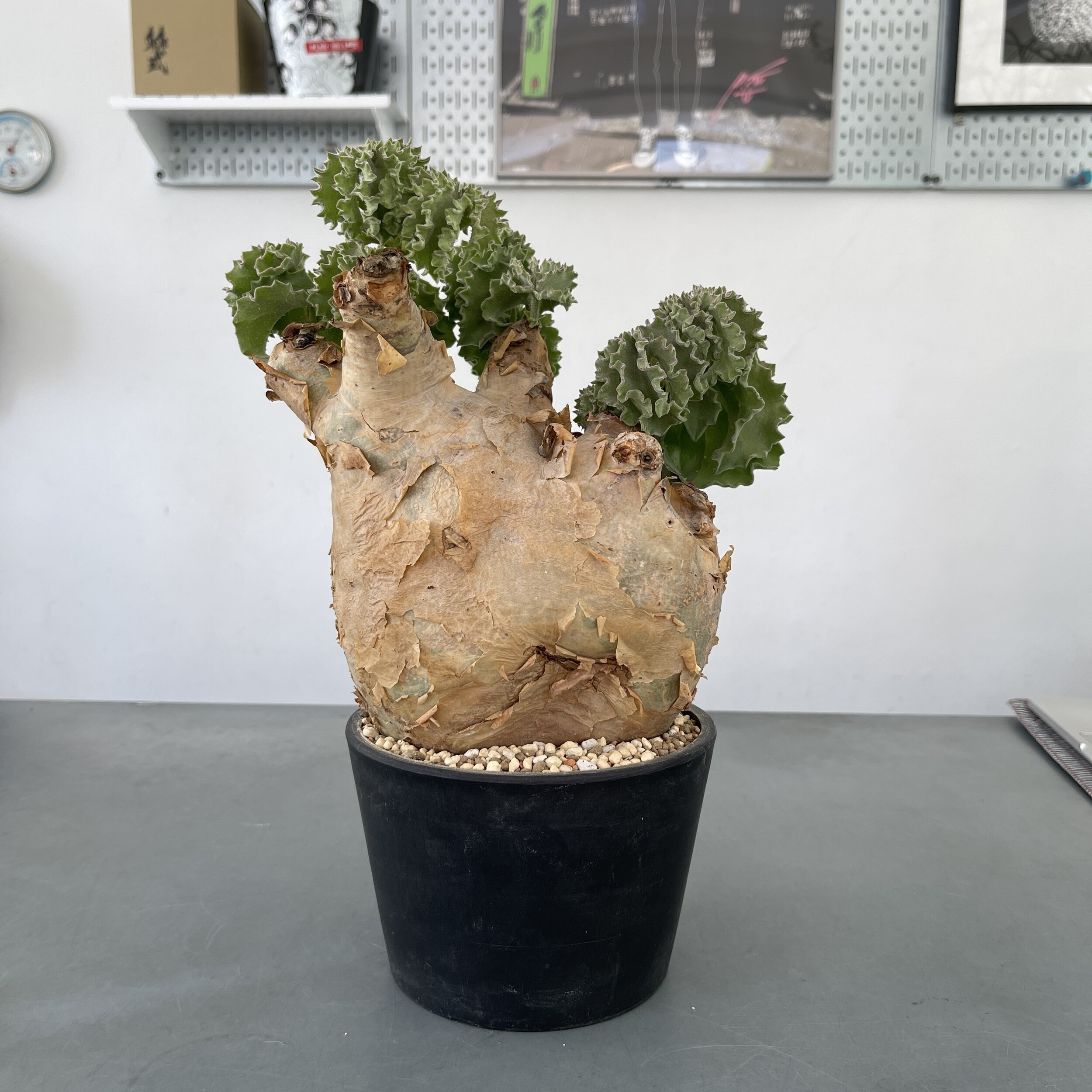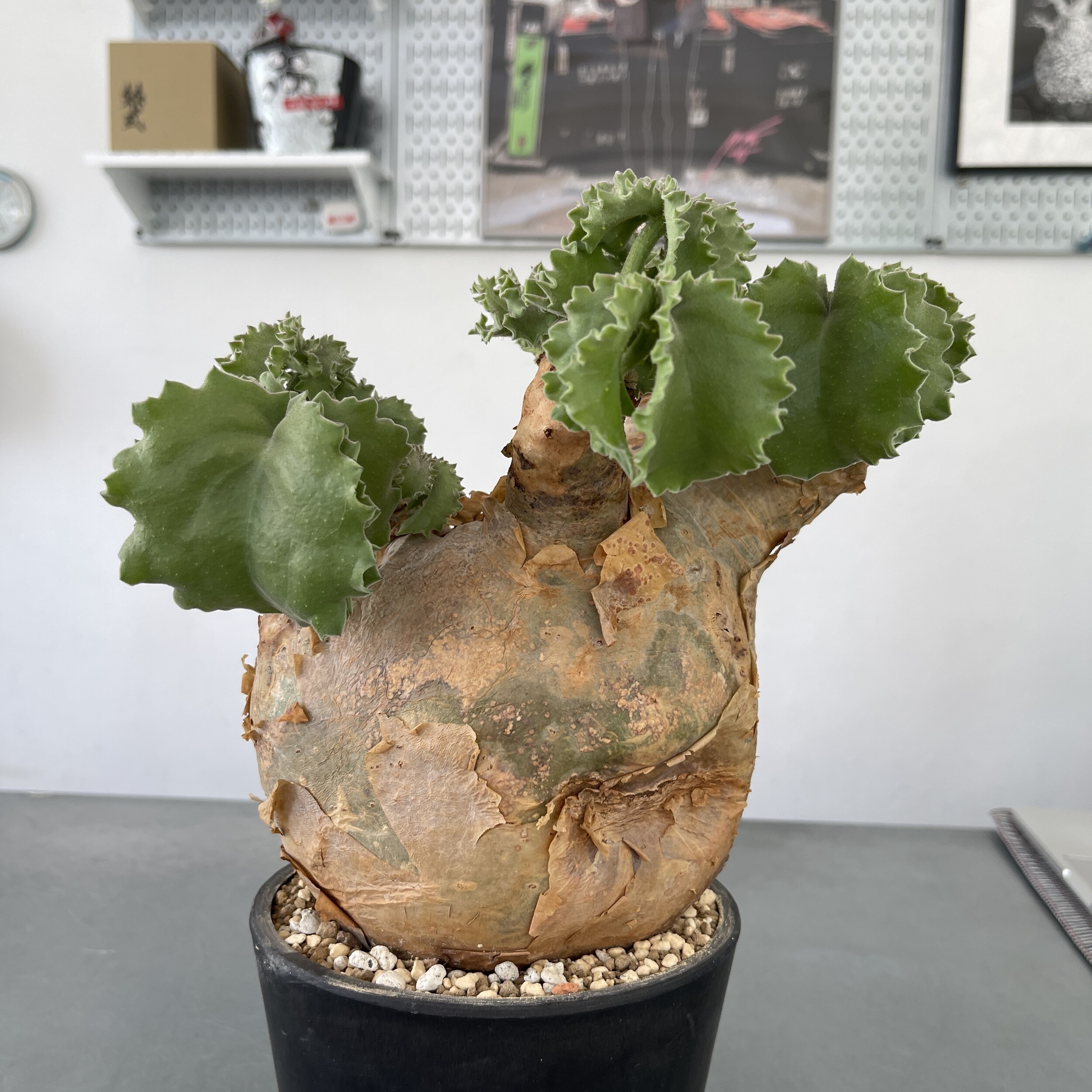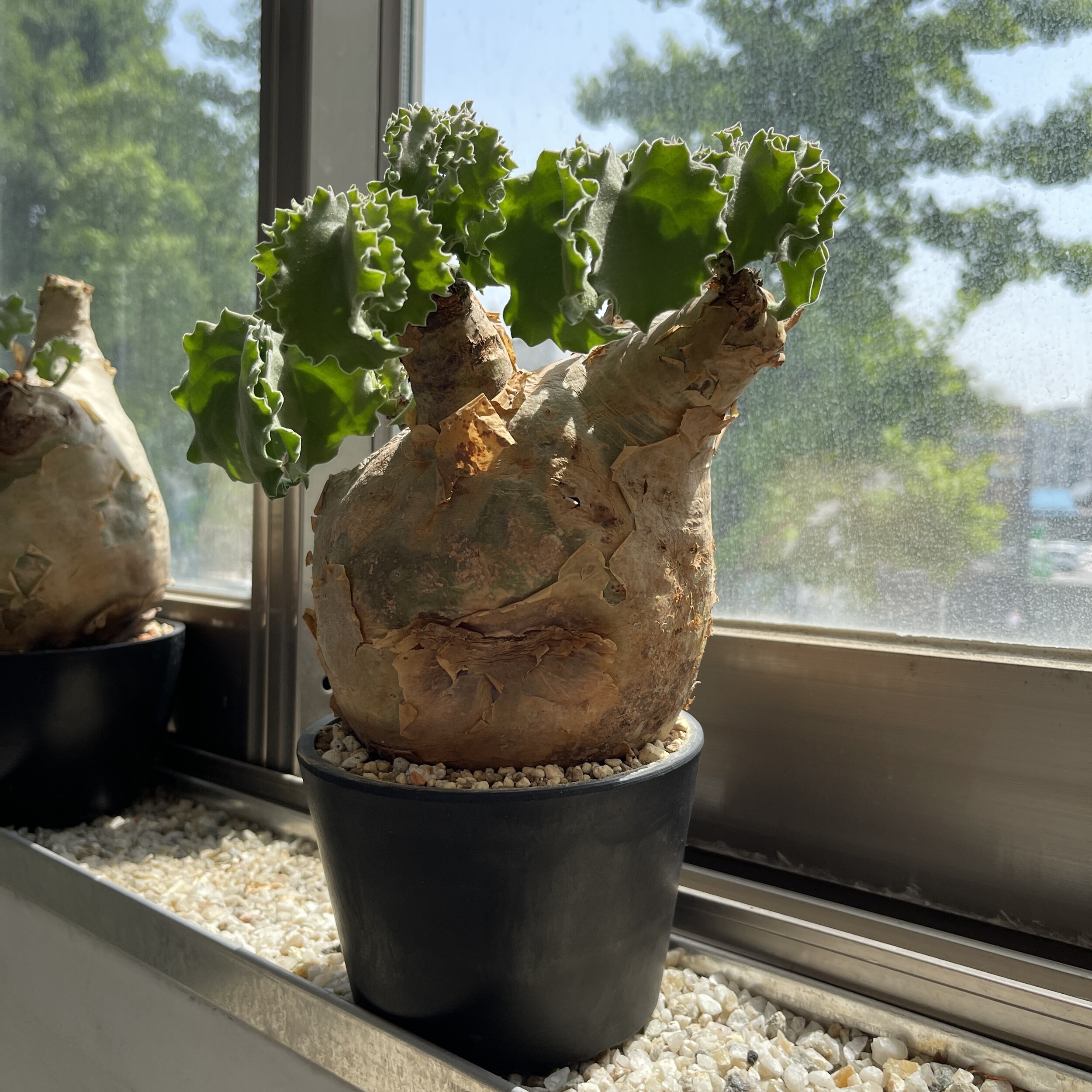'Caudex' 식물들은 늦가을부터 자연스럽게 잎이 떨어집니다. (환경에 따라 잎이 지지 않을 수 있습니다.) 잎이 떨어지기 시작하면 서서히 물을 줄여나가며 휴면기인 겨울 동안에는 2-3주 1회 가볍게 분무 해주시면 됩니다.
