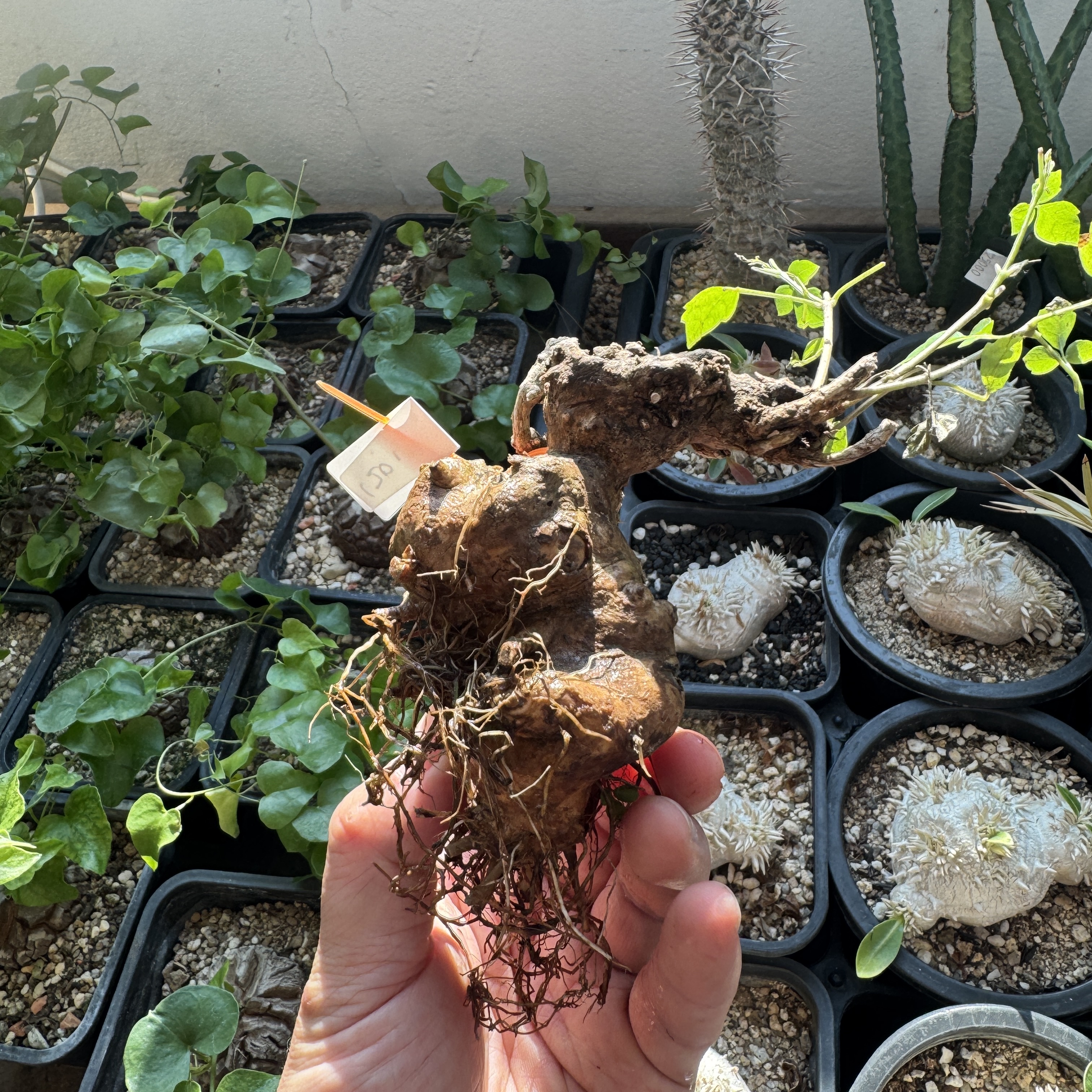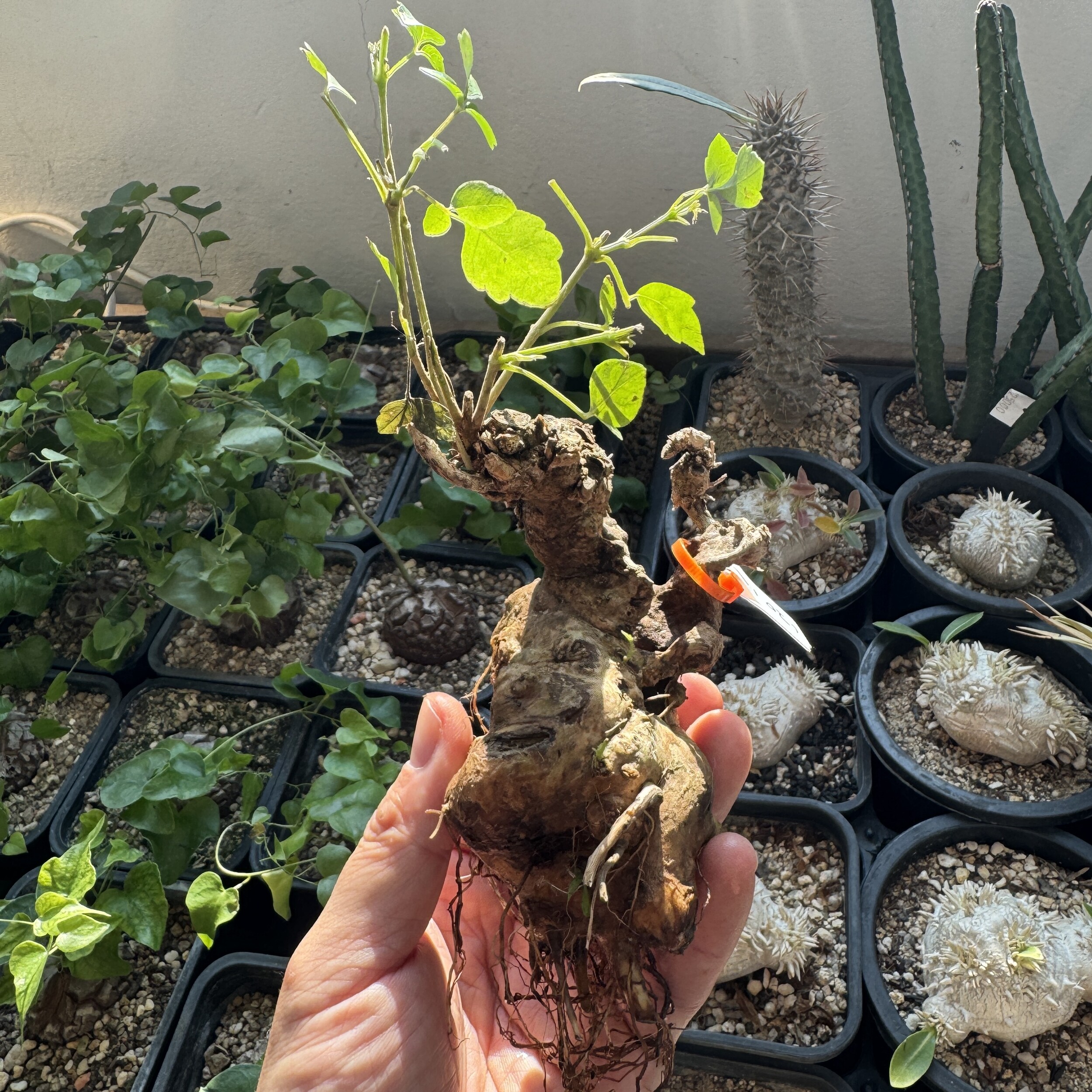 'Caudex' 식물들은 늦가을부터 자연스럽게 잎이 떨어집니다. (환경에 따라 잎이 지지 않을 수 있습니다.) 잎이 떨어지기 시작하면 서서히 물을 줄여나가며 휴면기인 겨울 동안에는 2-3주 1회 가볍게 분무 해주시면 됩니다.