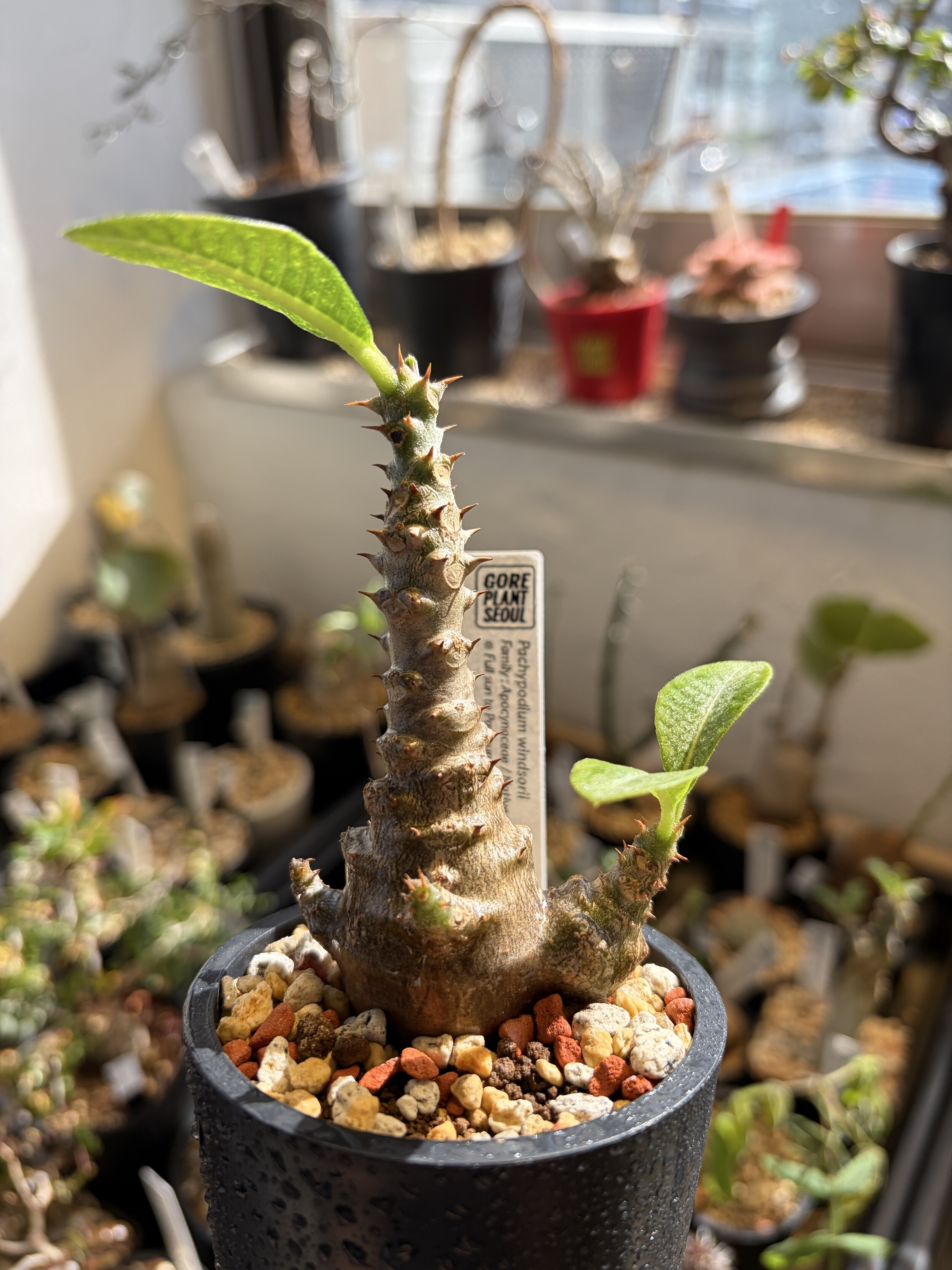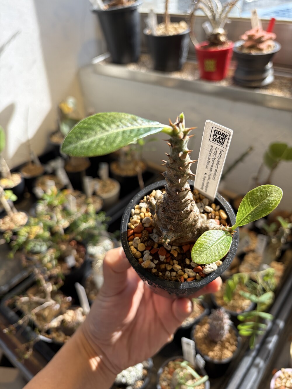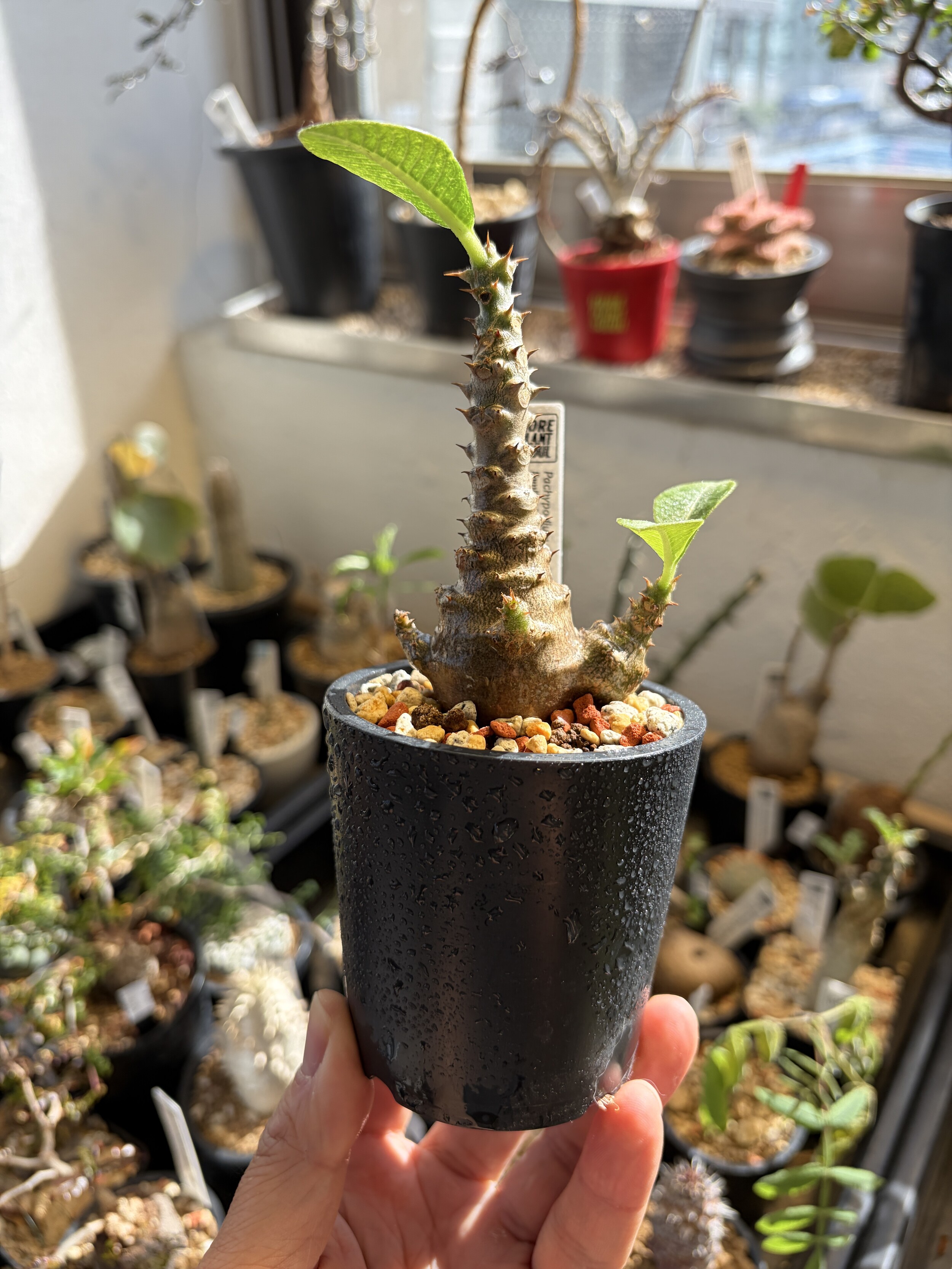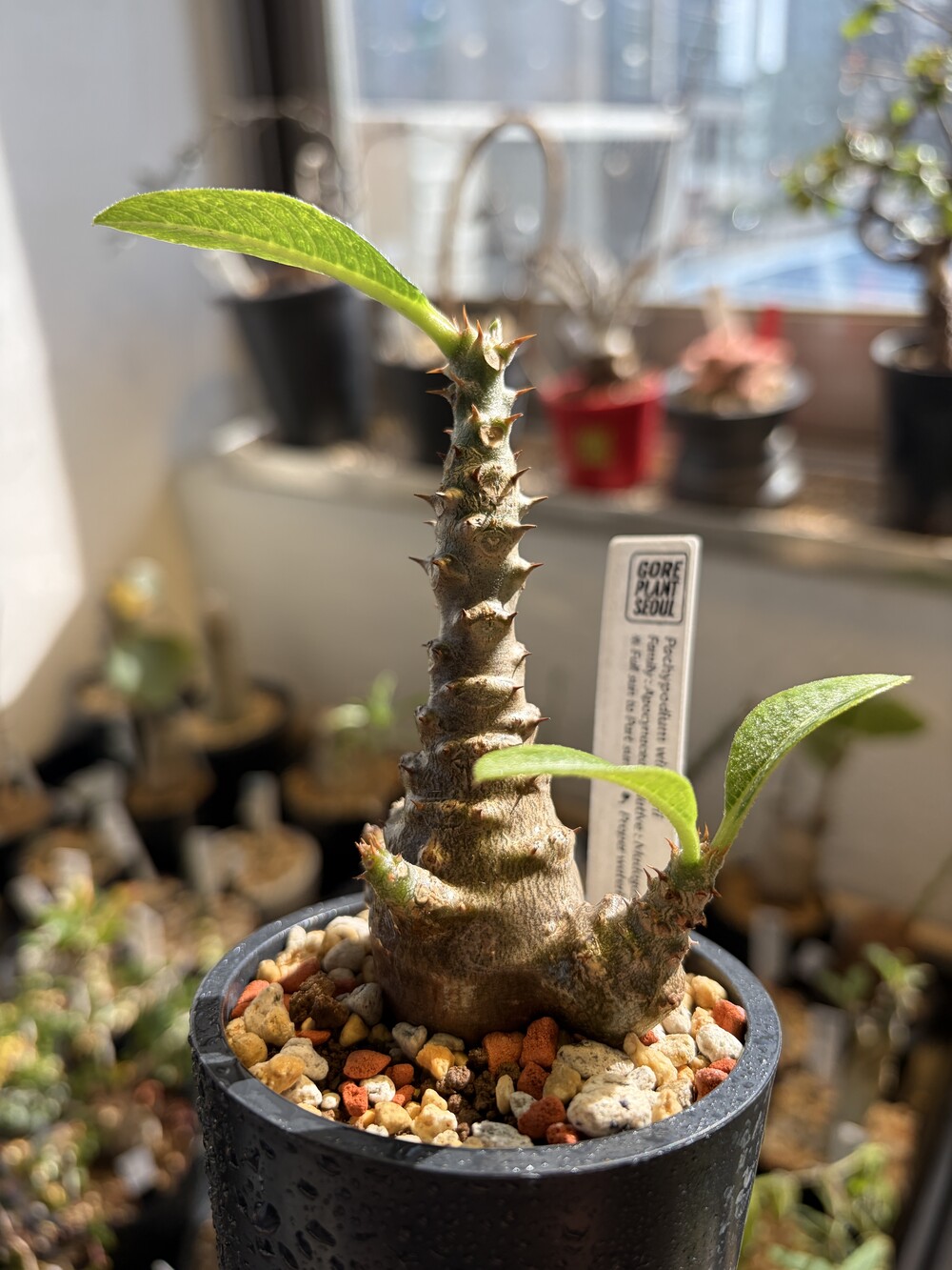 'Caudex' 식물들은 늦가을부터 자연스럽게 잎이 떨어집니다. (환경에 따라 잎이 지지 않을 수 있습니다.) 잎이 떨어지기 시작하면 서서히 물을 줄여나가며 휴면기인 겨울 동안에는 2-3주 1회 가볍게 분무 해주시면 됩니다.