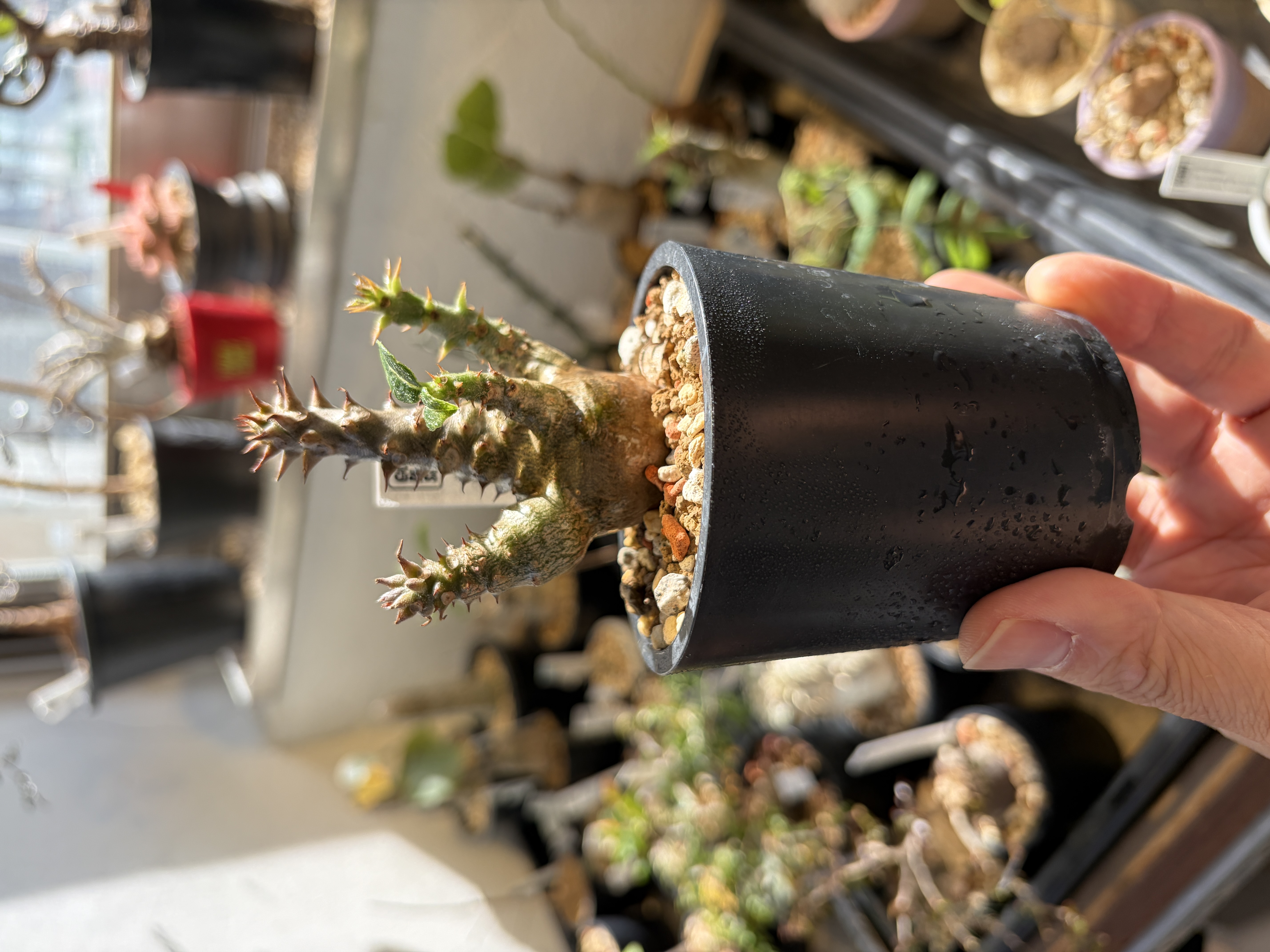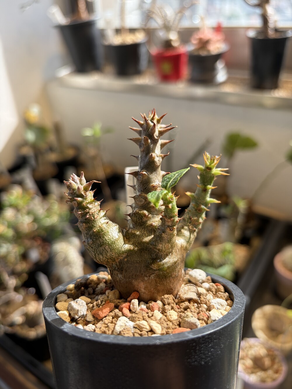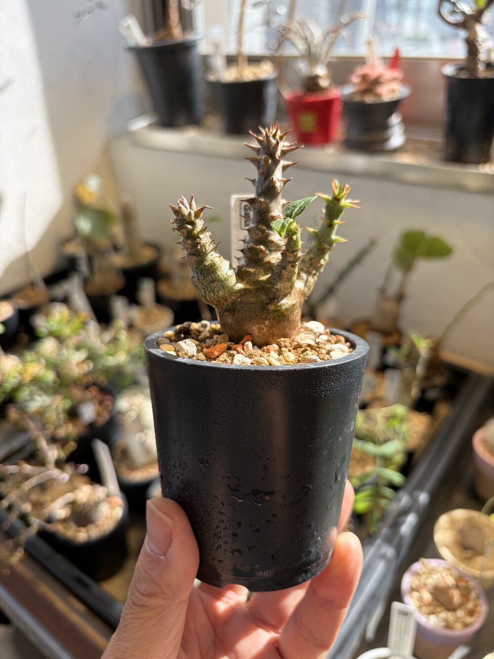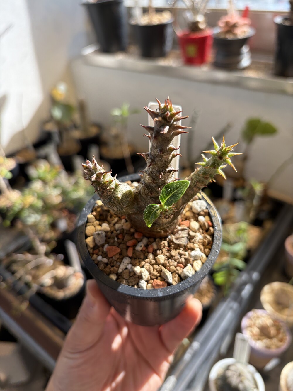 'Caudex' 식물들은 늦가을부터 자연스럽게 잎이 떨어집니다. (환경에 따라 잎이 지지 않을 수 있습니다.) 잎이 떨어지기 시작하면 서서히 물을 줄여나가며 휴면기인 겨울 동안에는 2-3주 1회 가볍게 분무 해주시면 됩니다.