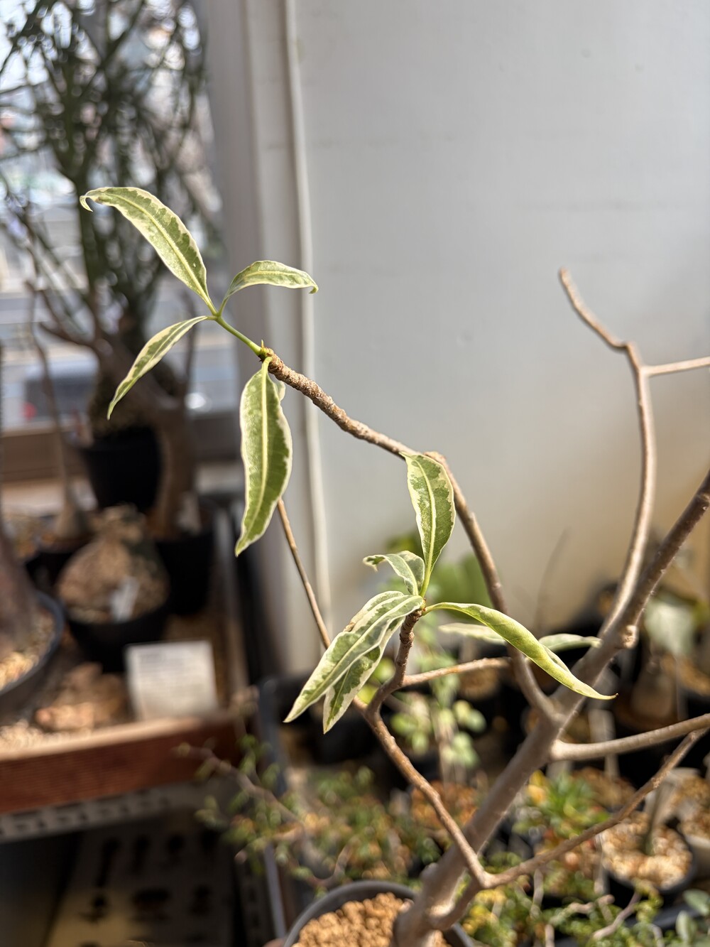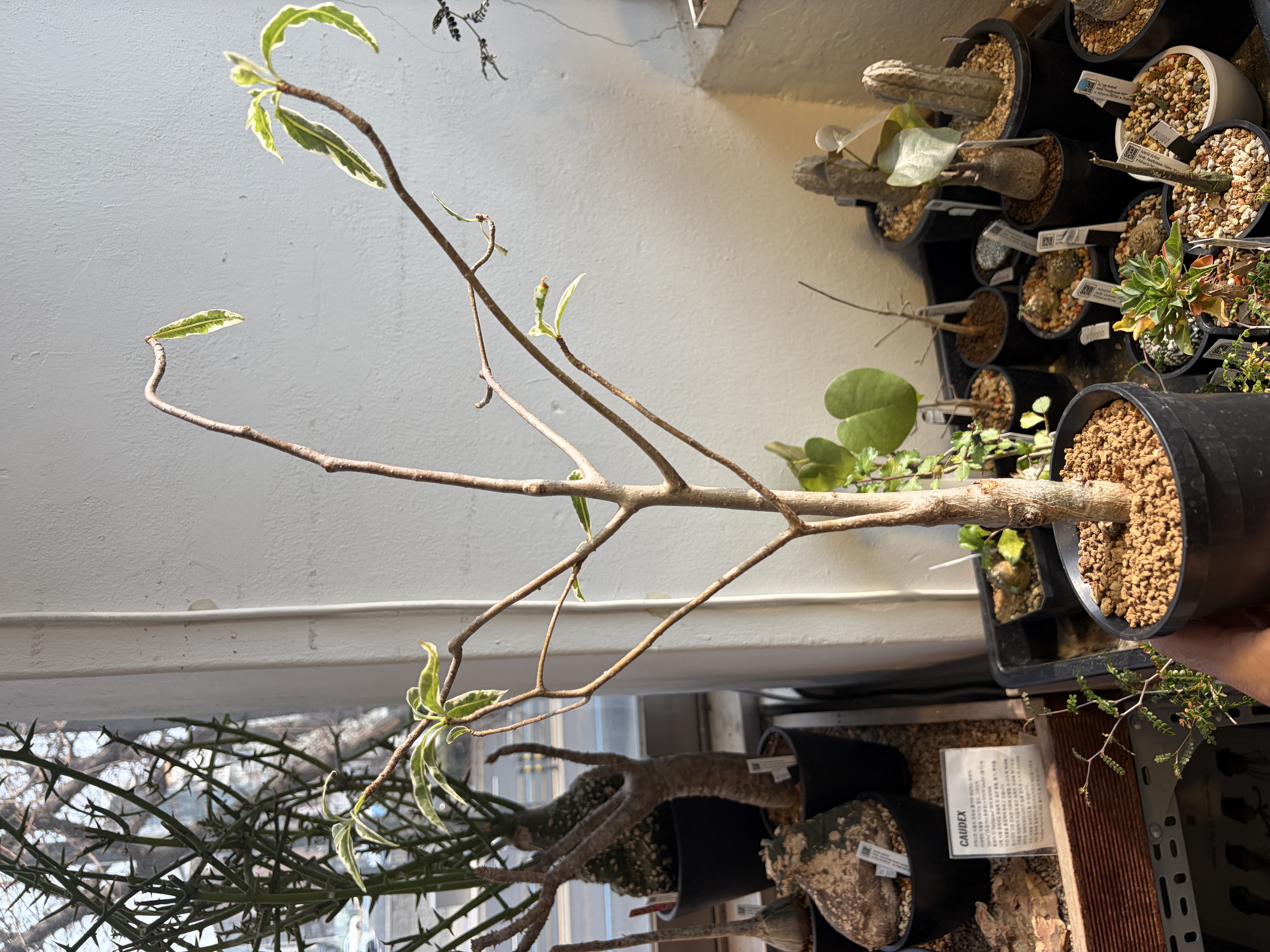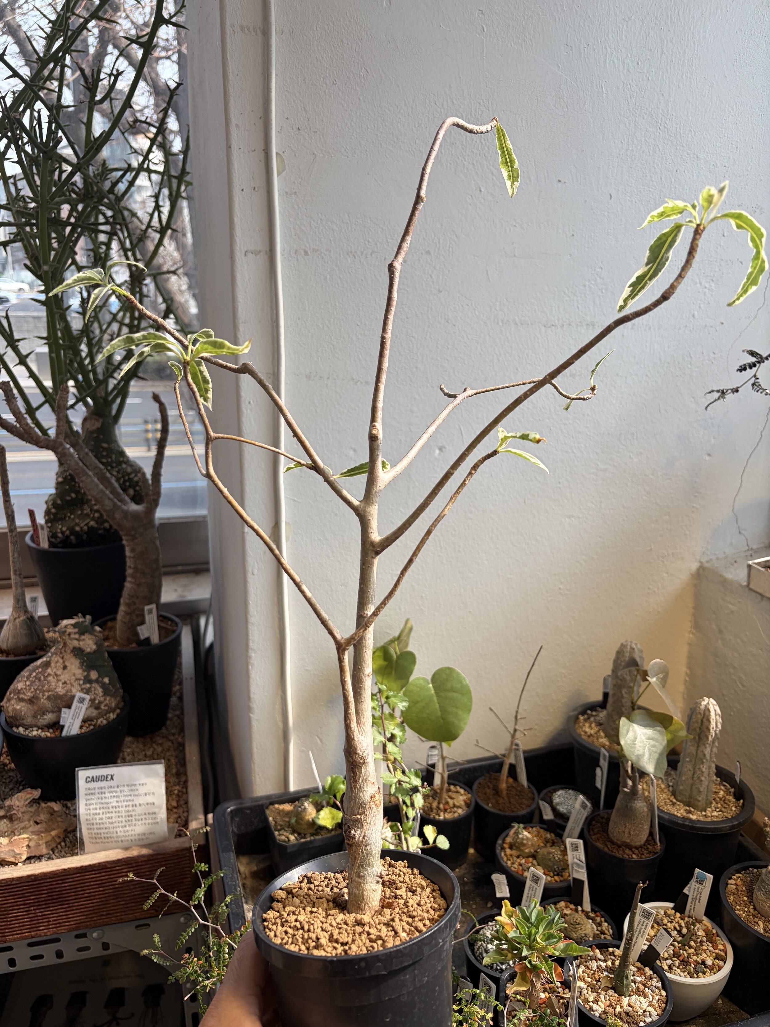 'Caudex' 식물들은 늦가을부터 자연스럽게 잎이 떨어집니다. (환경에 따라 잎이 지지 않을 수 있습니다.) 잎이 떨어지기 시작하면 서서히 물을 줄여나가며 휴면기인 겨울 동안에는 2-3주 1회 가볍게 분무 해주시면 됩니다.