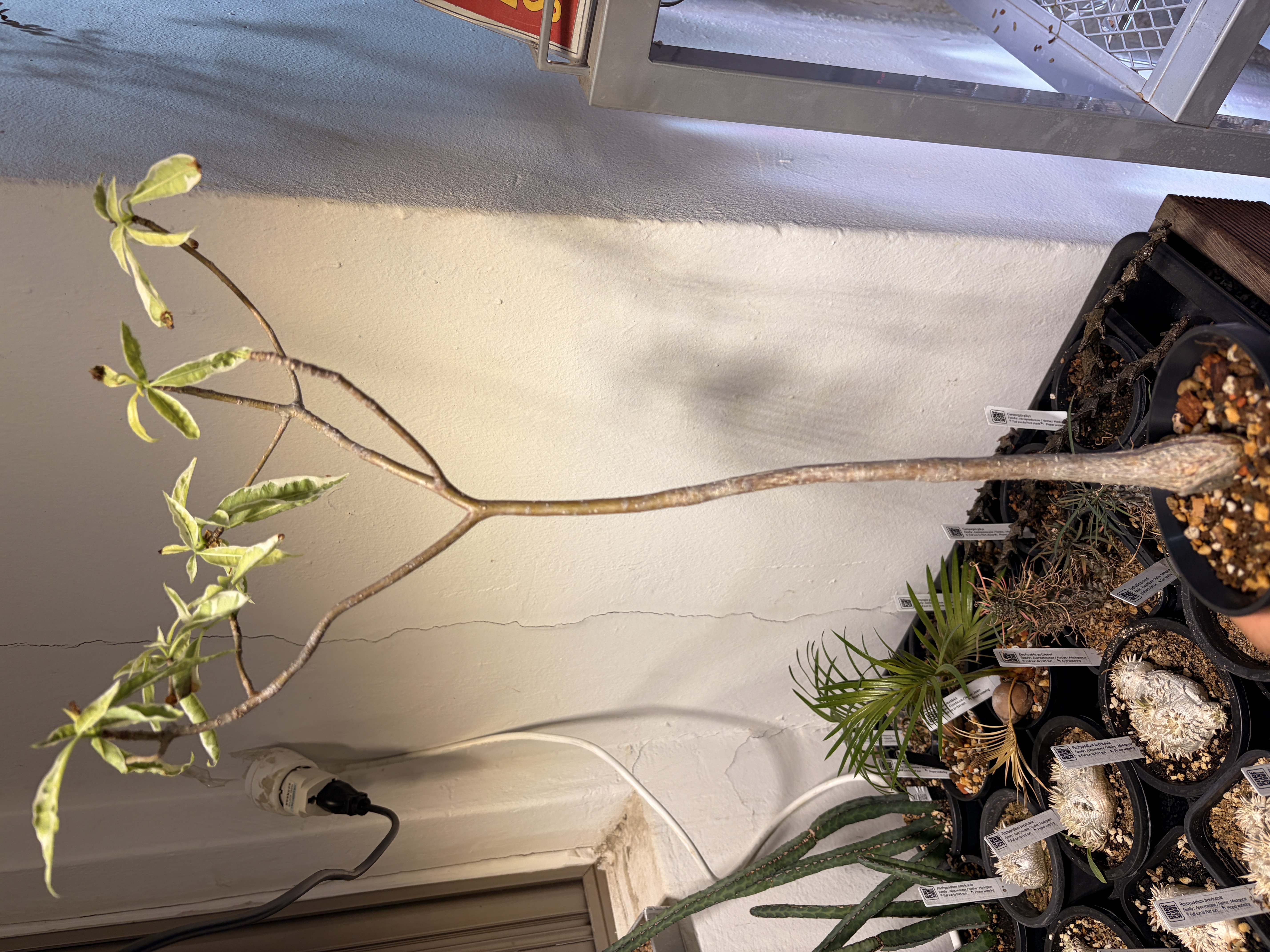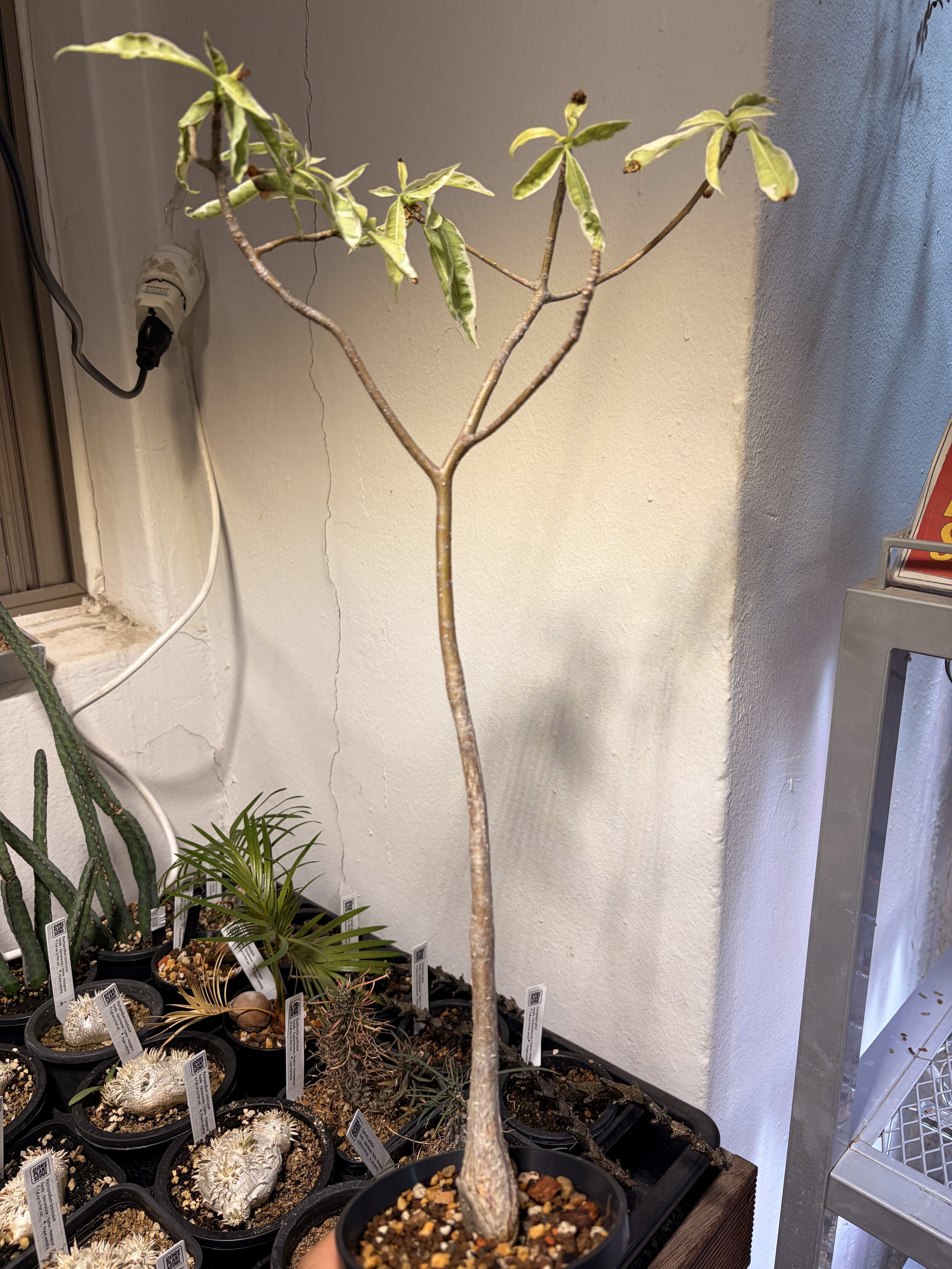'Caudex' 식물들은 늦가을부터 자연스럽게 잎이 떨어집니다. (환경에 따라 잎이 지지 않을 수 있습니다.) 잎이 떨어지기 시작하면 서서히 물을 줄여나가며 휴면기인 겨울 동안에는 2-3주 1회 가볍게 분무 해주시면 됩니다.